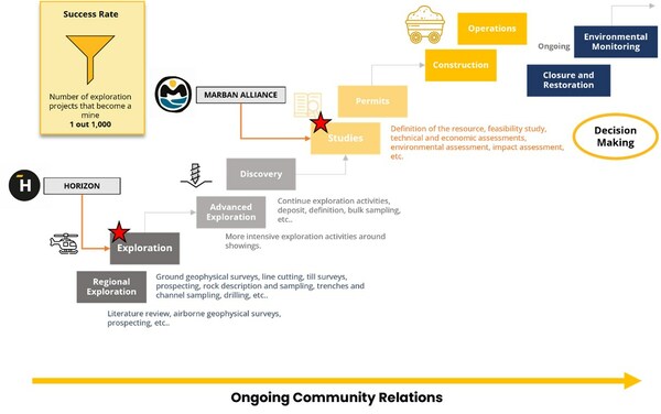 - Marban Ingénierie devient le projet Marban Alliance qui est au stade de développement avancé (voir les figures 1 et 2). Ces types de projets font généralement l'objet de travaux approfondis et d'études menées par des tiers, qui évaluent la faisabilité technique et économique d'un projet minier.
