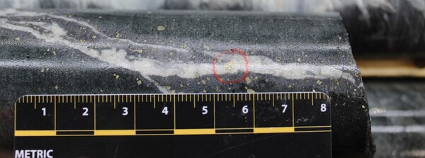 Figure 1 : Photo de l'or visible à 241,9 mètres dans le sondage O3MA-24-707 à Malartic H